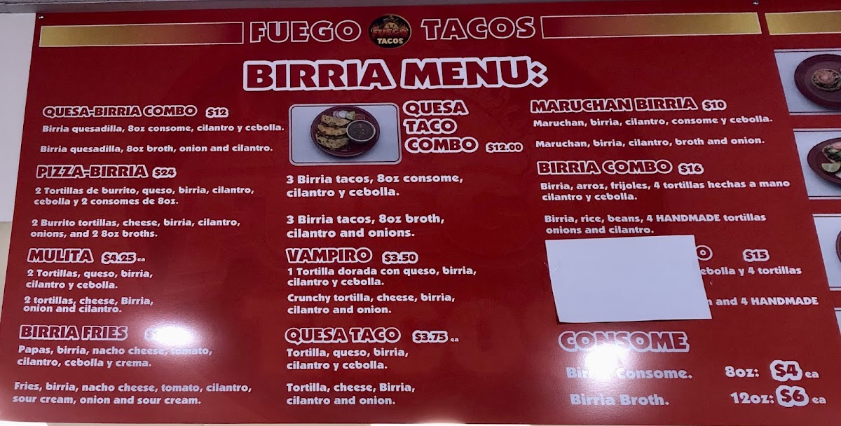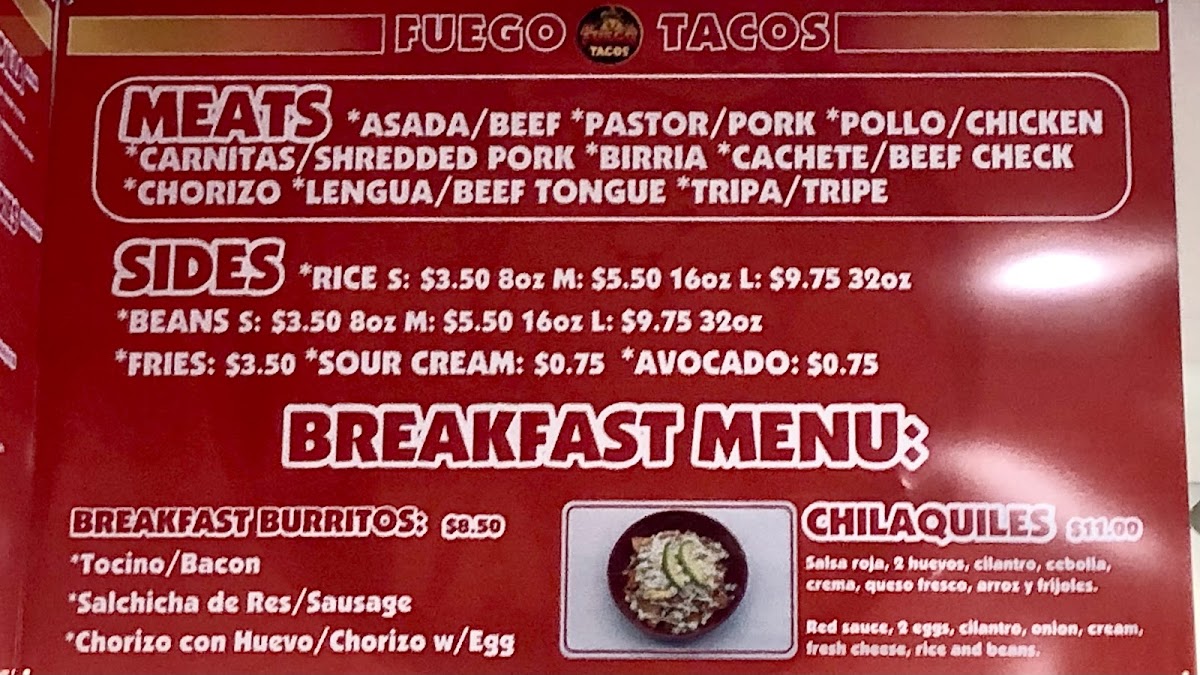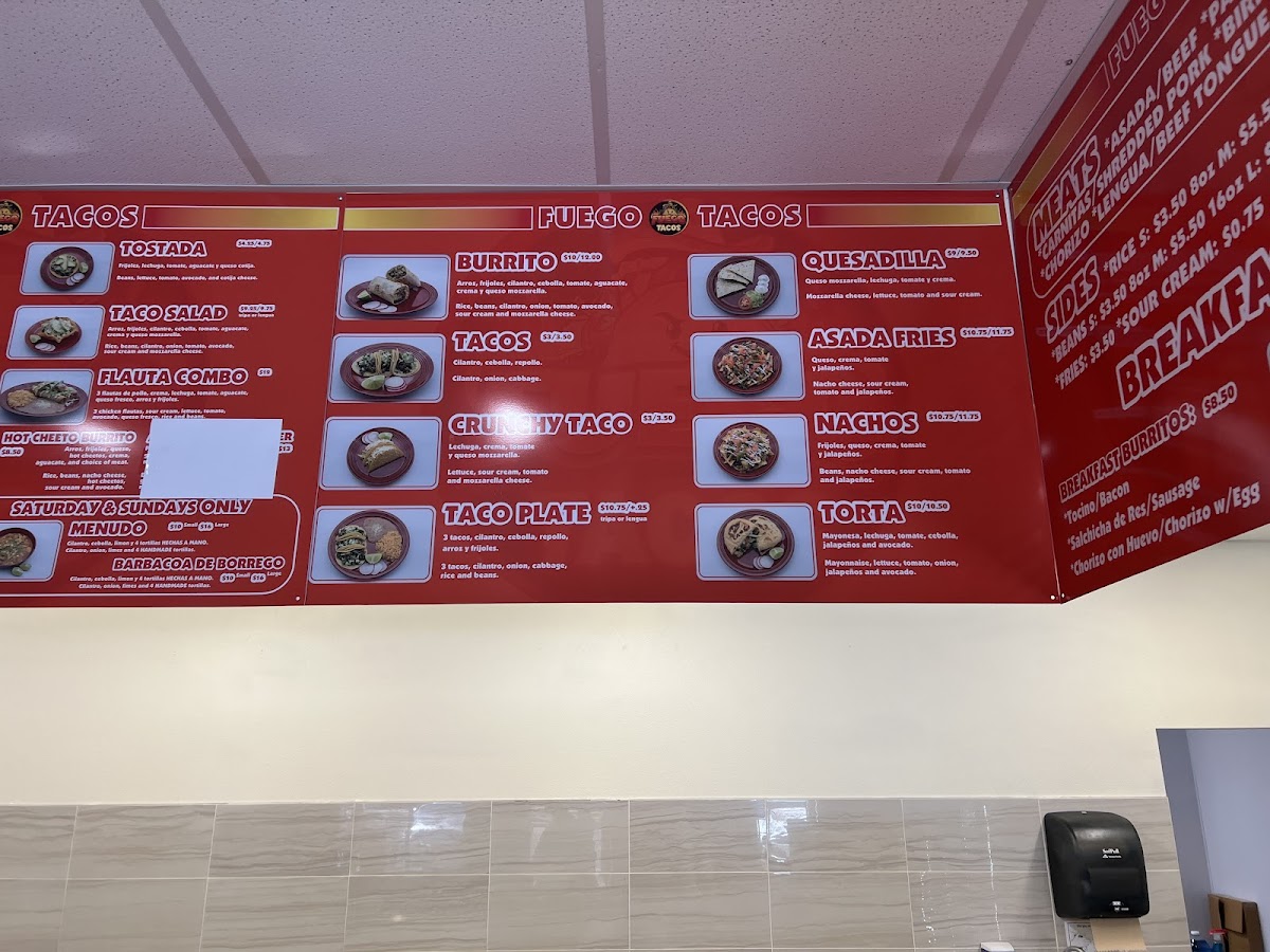 Step into Fuego Tacos Ent. Menu and experience a mouthwatering selection of bold, vibrant flavors right in the heart of Newberg. From sizzling street tacos to savory burritos, each dish brings together the best of authentic Mexican ingredients with a modern twist. Whether you’re craving a classic carne asada taco or something with a little more heat, Fuego Tacos has something to satisfy every taste. Don’t forget to try their signature sauces, which add the perfect touch to any meal. Located at 2401 Portland Rd, Fuego Tacos is the perfect spot for a quick bite or a relaxing meal with friends.
